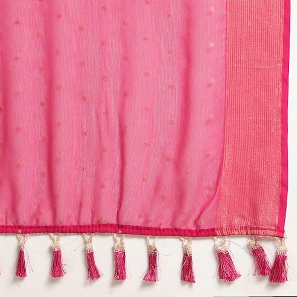 Pink & Gold-Toned Floral Zari Pure Chiffon Saree